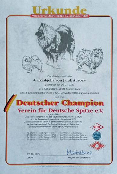 Grizzabjella hat die Zuchtzulassung im Verein für deutsche Spitze FCI/VDH